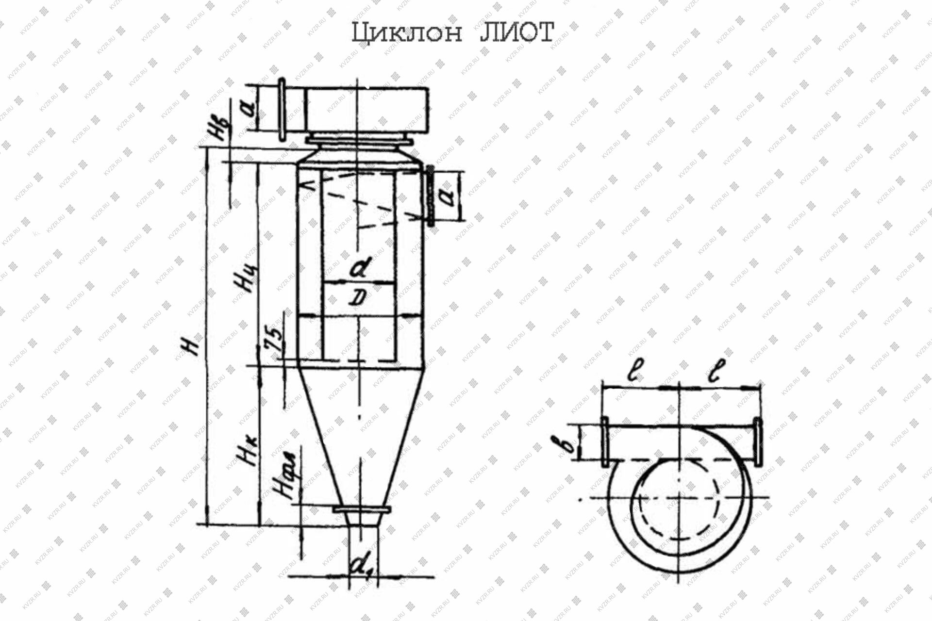 Циклон ЛИОТ представляет собой инерционный пылеуловитель, в котором выделение частиц из воздушной среды происходит в основном под воздействием центробежной силы, возникающей при вращении воздушного потока в корпусе аппарата.