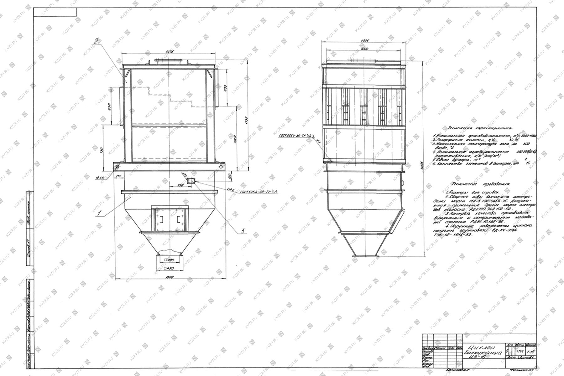 Агрегат БЦ 2 состоит из параллельно установленных чугунных циклонных элементов, объединенных в одном корпусе и имеющих общие подвод и отвод газов, а также сборный двухсекционный бункер.